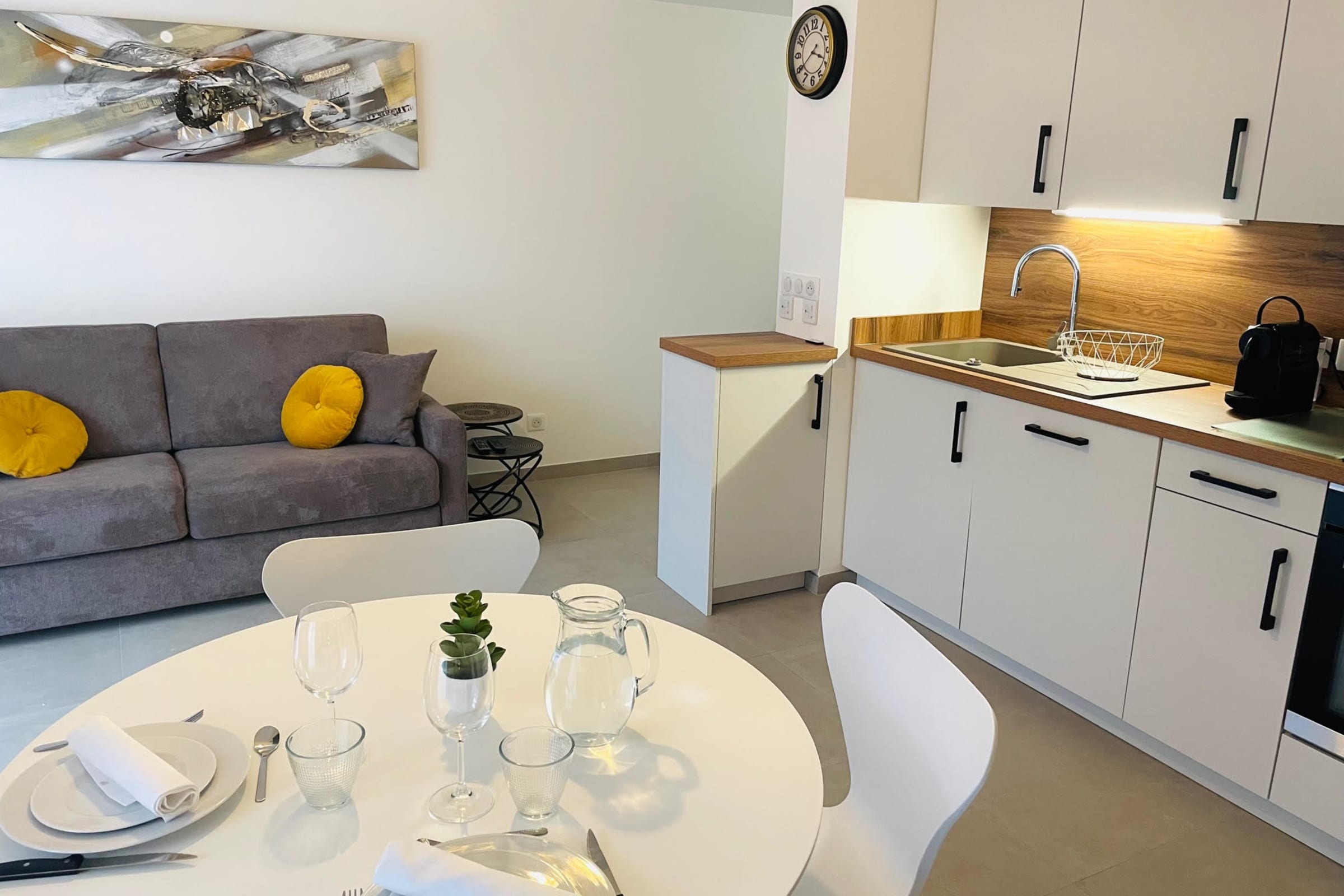 The apartment is equipped with a Smart TV, wifi, and all the necessary equipment for a good stay such as a Nespresso coffee machine, a dishwasher, washing machine, kettle, toaster etc.